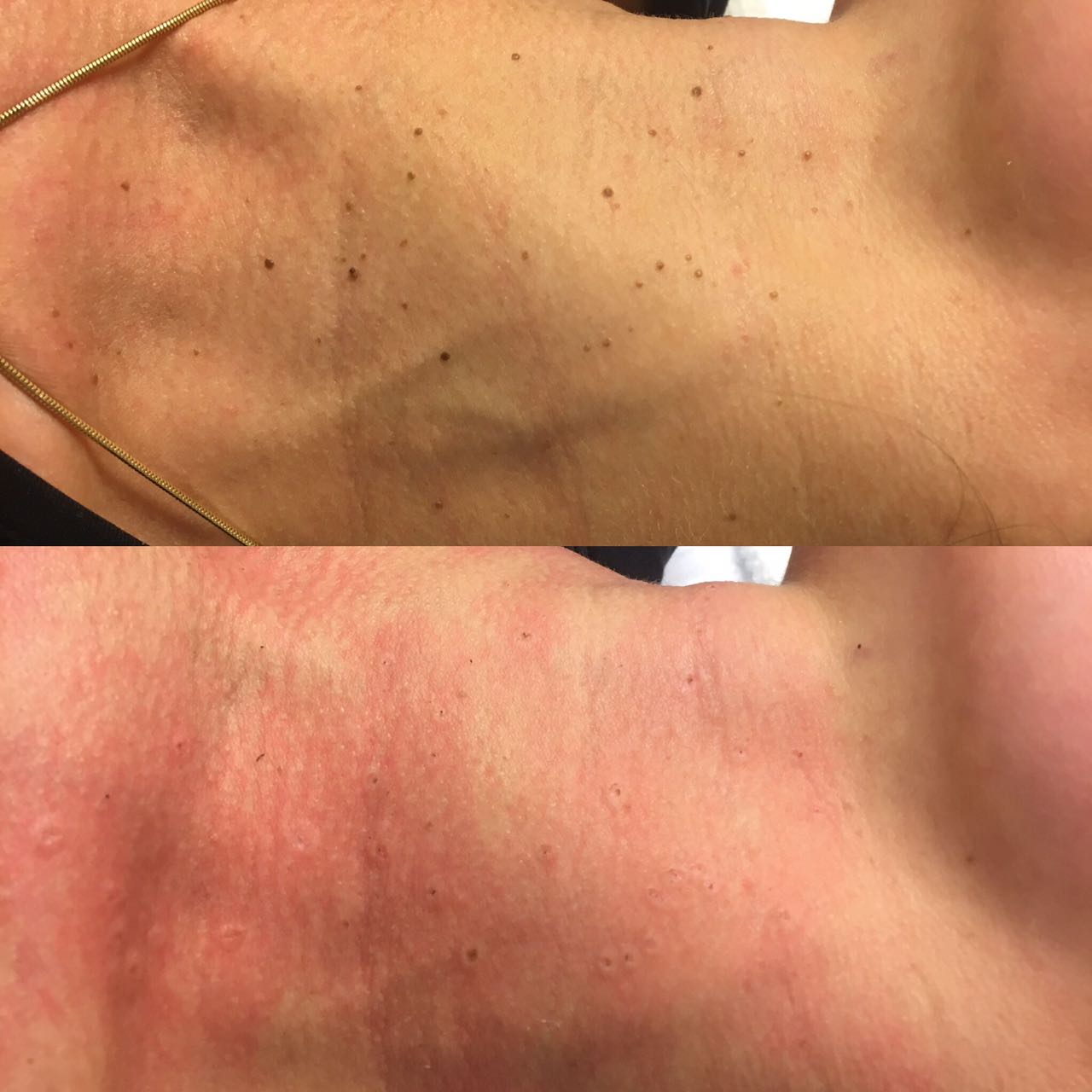 На фото — работа врача Слепцовой К.В., удаление папиллом лазером, небольшая гиперемия сразу после прижигания (проходит через несколько часов)